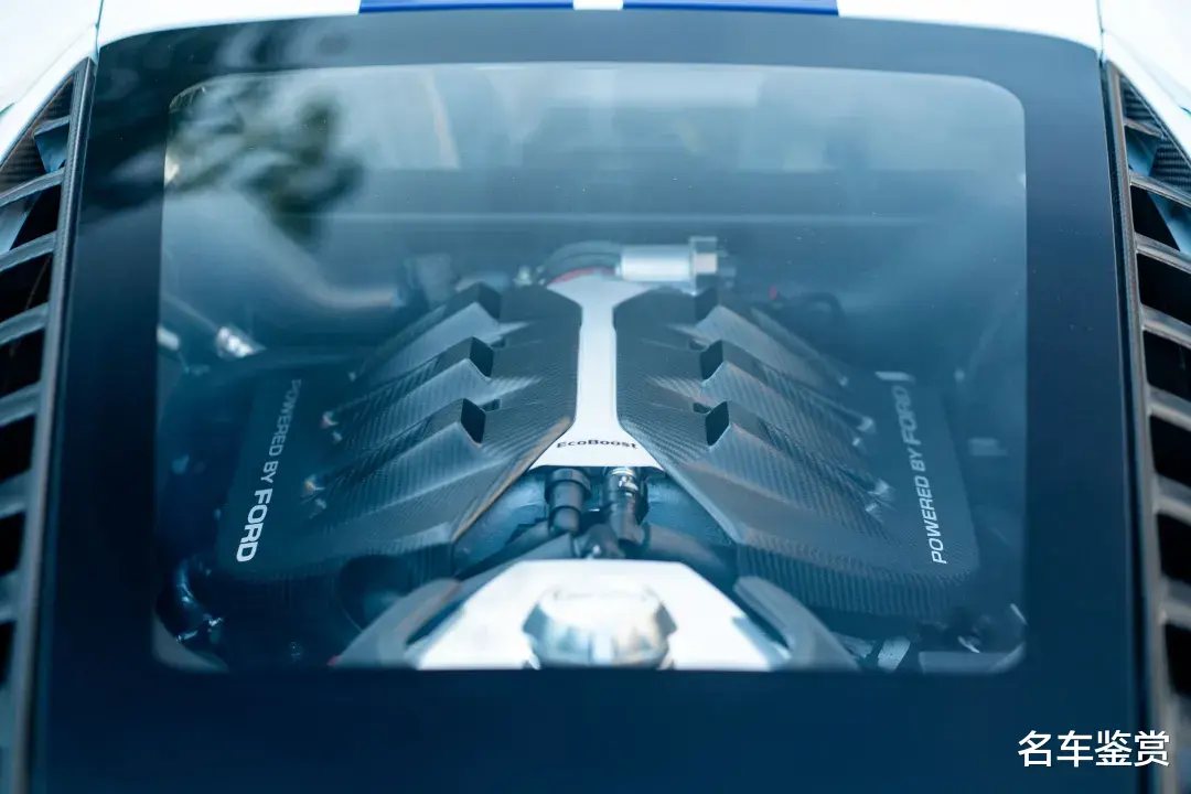 第二代福特GT搭载了一台647马力、3.5升双涡轮增压EcoBoost V6发动机,与七速Getrag双离合变速器相匹配,可以在2.8秒内从静止加速至100公里/小时,最高时速可达348公里/小时。