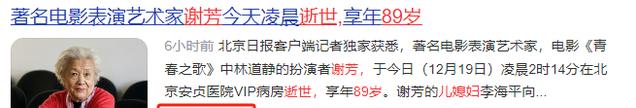 12月19日凌晨两点多,老戏骨谢芳去世,享年90岁。