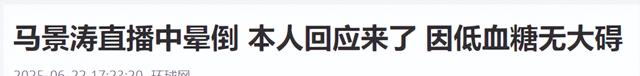 环球网-2025-06-22——《马景涛直播中晕倒 本人回应来了 因低血糖无大碍》