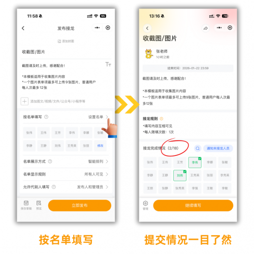 按名单填写:可实时查看进度,谁还没提交一目了然。