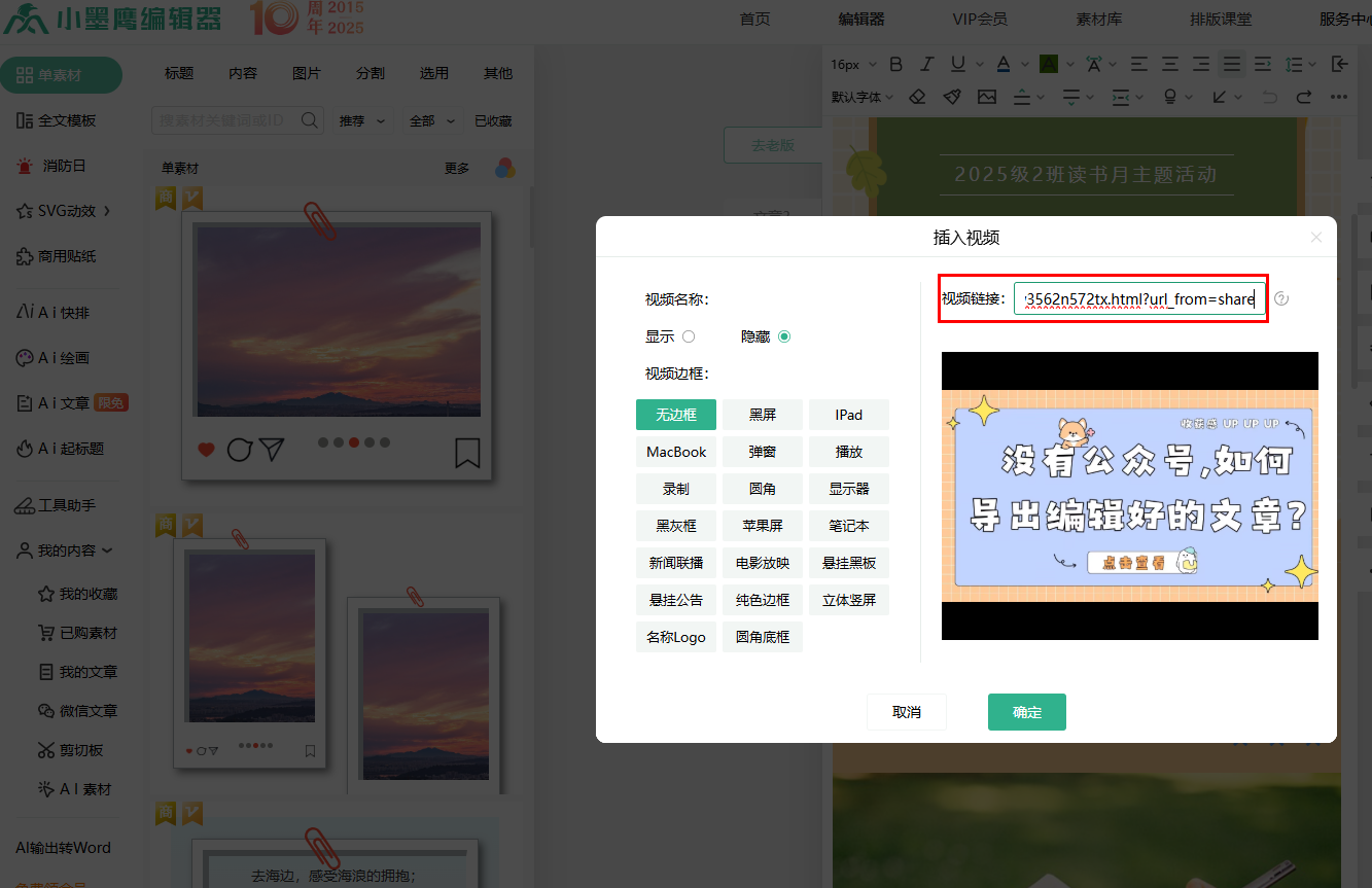 想让公众号图文更生动吸睛?给文章插入视频就是好办法!今天用小墨鹰编辑器,教你一步步搞定视频插入,还能给视频加好看边框,全程超简单,新手也能快速上手~