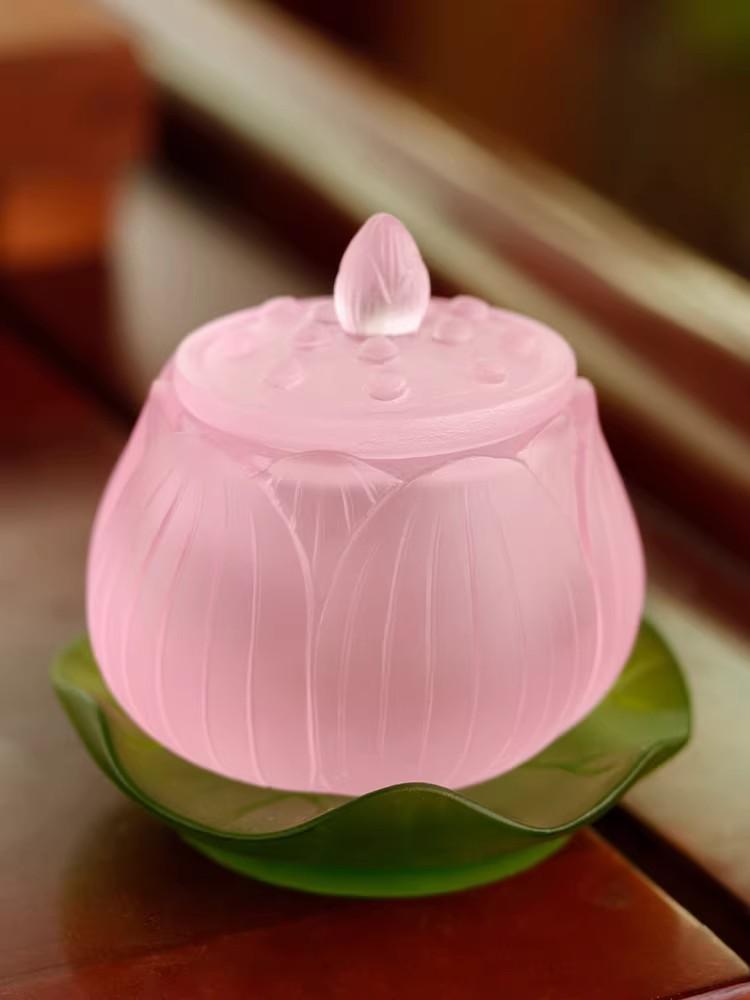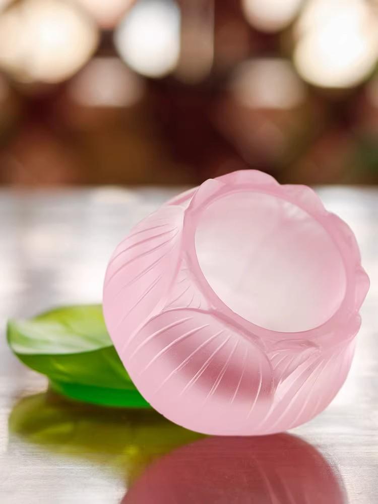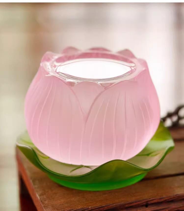 琉璃本身在佛教中也占据特殊地位。它是佛教 “七宝” 之一 ,“火里来水里去” 的工艺特点,被佛教视为千年修行境界的化身 ,在诸多经典里,“形神如琉璃” 被看作是佛家修养的最高境界 。将琉璃制成莲花圣水杯用于佛前供水,不仅是外在形式的供养,更承载着人们对内心修行、智慧开启、境界提升的祈愿 ,让这份供奉蕴含着深厚的精神追求与文化寄托。