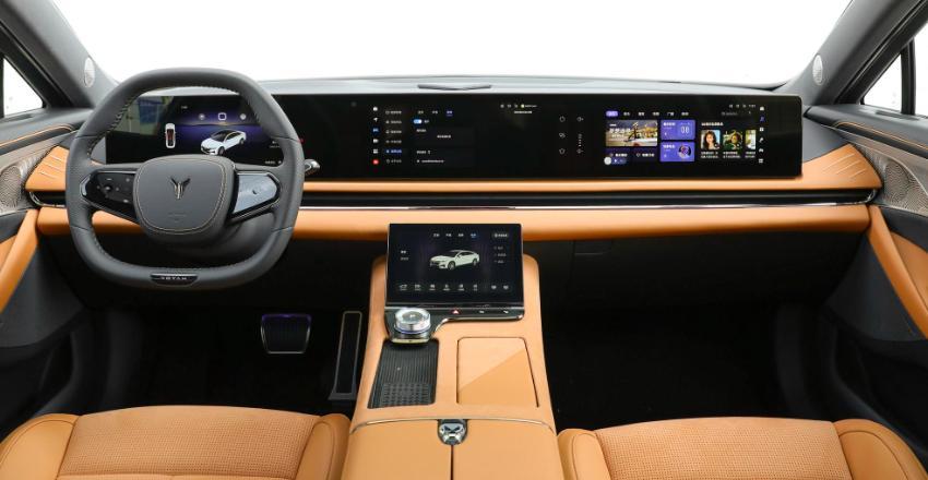 进入车内,你会被12.3+12.3+12.3+9英寸的四联屏座舱所吸引。这种“屏幕堆叠”的设计,虽然有人觉得略显浮夸,但也确实营造出了满满的科技感。T型对称式环抱座舱布局,搭配大面积的软性材质包覆和精致的缝线,提升了车内的豪华氛围。电子旋钮水晶换挡机构和实体玻璃触控面板,则进一步提升了科技感和档次感。