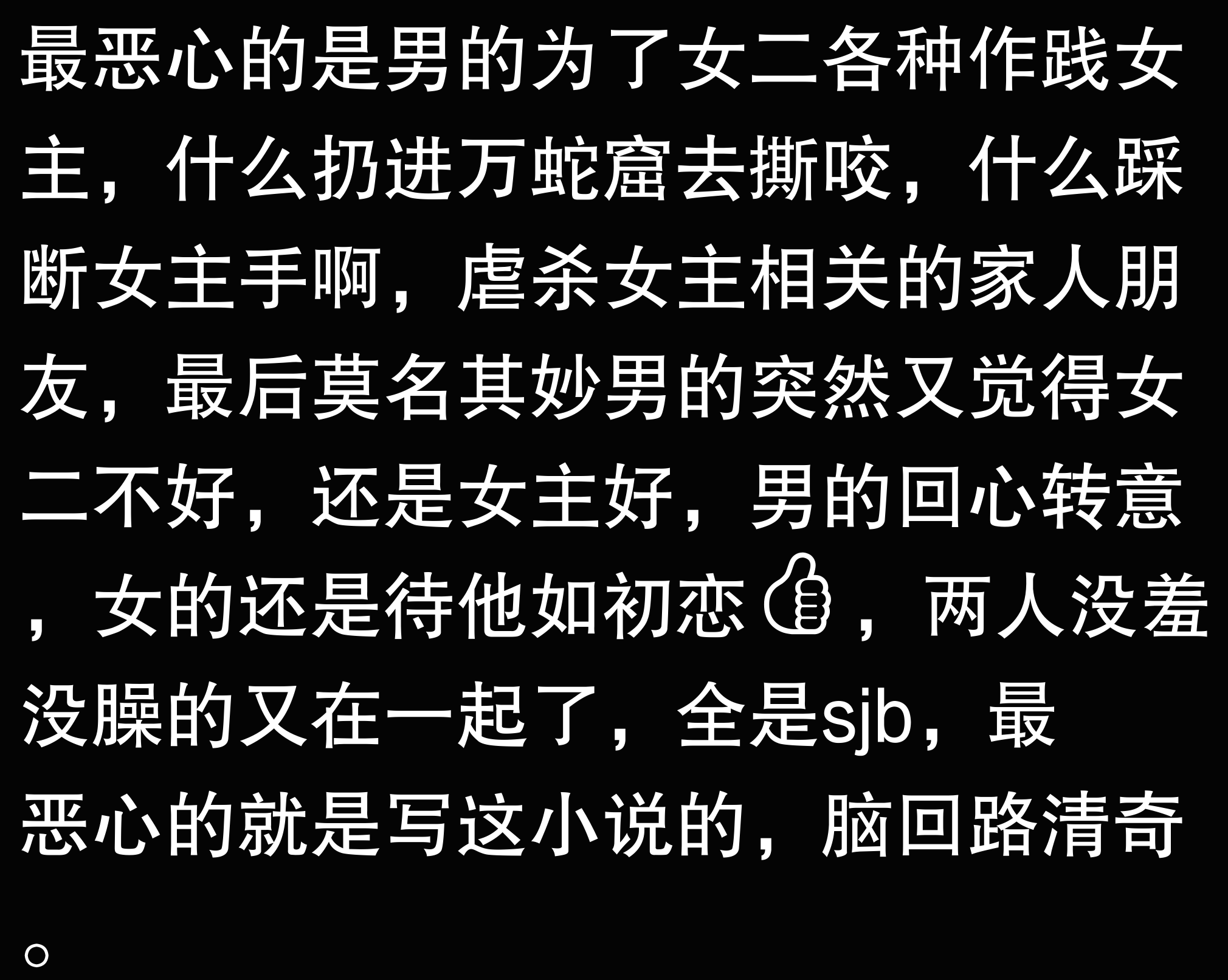 我试看一下男频,妈呀,全是男主被人欺,被陷害,被女人骗心骗丹田骗修为,然后得奇遇一朝牛逼上天了,谁也打不过!每个女人都非他不可~我看到都替他尴尬!女频的雷点我讨厌虐文,妈的,这个世界上就一个男的吗?还有重生前作天作地,怪天怪地怪渣男渣女就是不怪自己的还能重生,真是服了,重生就重生吧,还能舔着脸去巴上辈子被她害的惨死的男主,又能爱的死去活来了