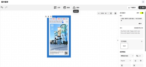 此时翻译过的文字已不再是原来的图片格式,而是变成了若干个彼此相互分离的文本框,我们可以自由地对其进行包括但不限于字体字号颜色的位置等在内的任何改动,并在此基础上加入各式各样的品牌贴纸或其他附加物来最终呈现出与品牌调性相符且符合审美的成品。