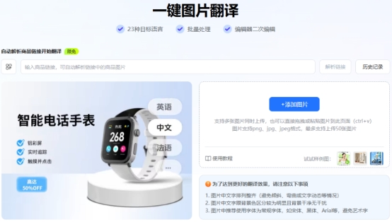 对于需要商用的如用于网站商城售卖或进行宣传推广的主图、海报等产品图片来说,如果既要确保准确性又要兼顾美观性,则我认为易可图是最佳选择,因为它不仅具备图片翻译的功能,而且可以实现后续对图片的设计修改。主要功能及特点有: