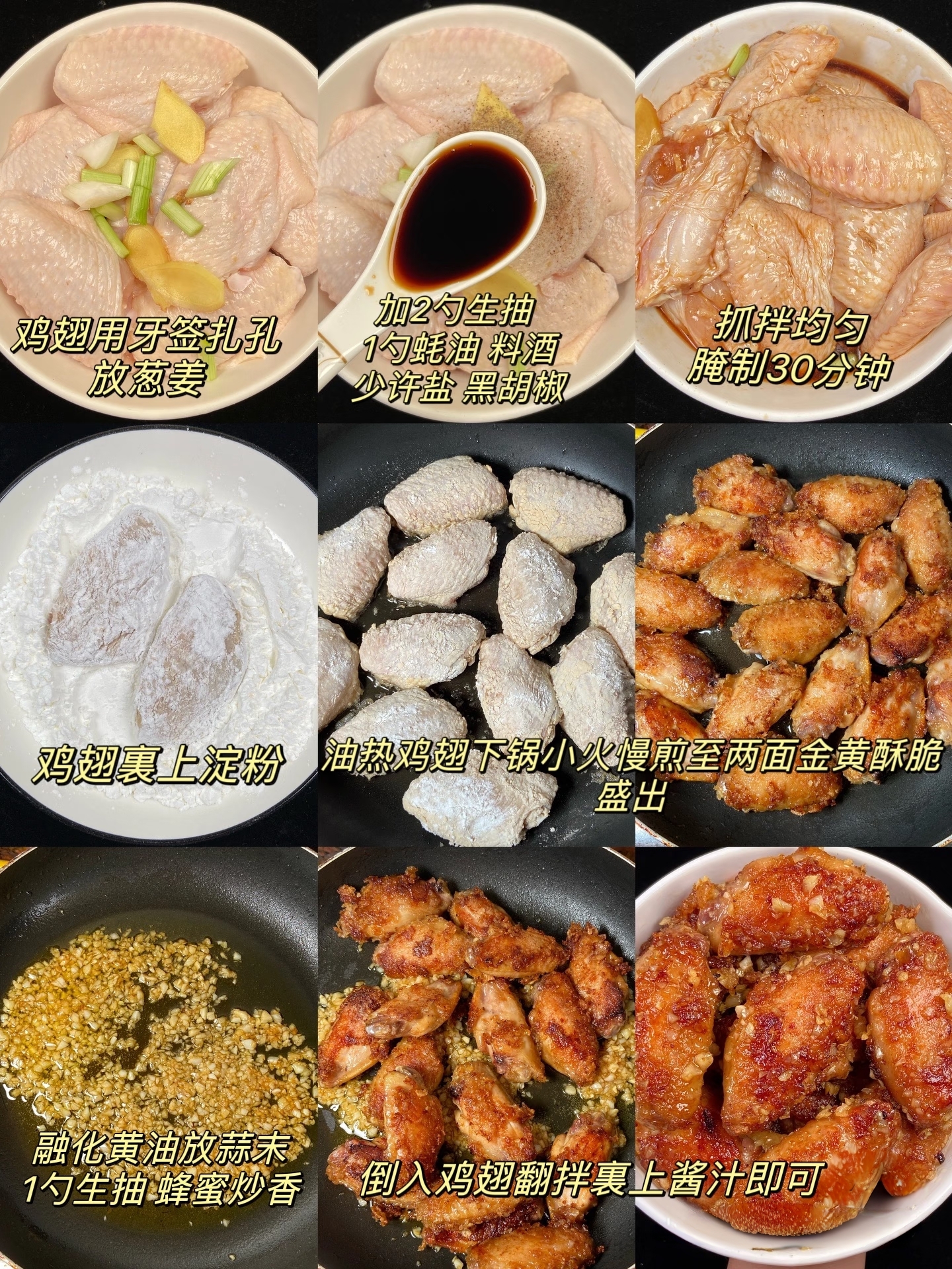 1. 处理腌制:鸡翅洗净,在两面划几刀(便于入味)。加入2勺生抽、1勺料酒、1勺蚝油、少许盐和胡椒粉抓匀。重点来了:加入一勺淀粉抓匀,并放入一半的蒜末,腌制至少15-20分钟。淀粉是外皮焦香的关键。