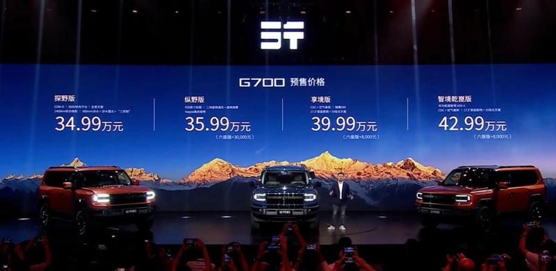除了此次上市的纵横G700外,捷途还同步推出了G700两栖至尊航行版的预定,售价70万元。