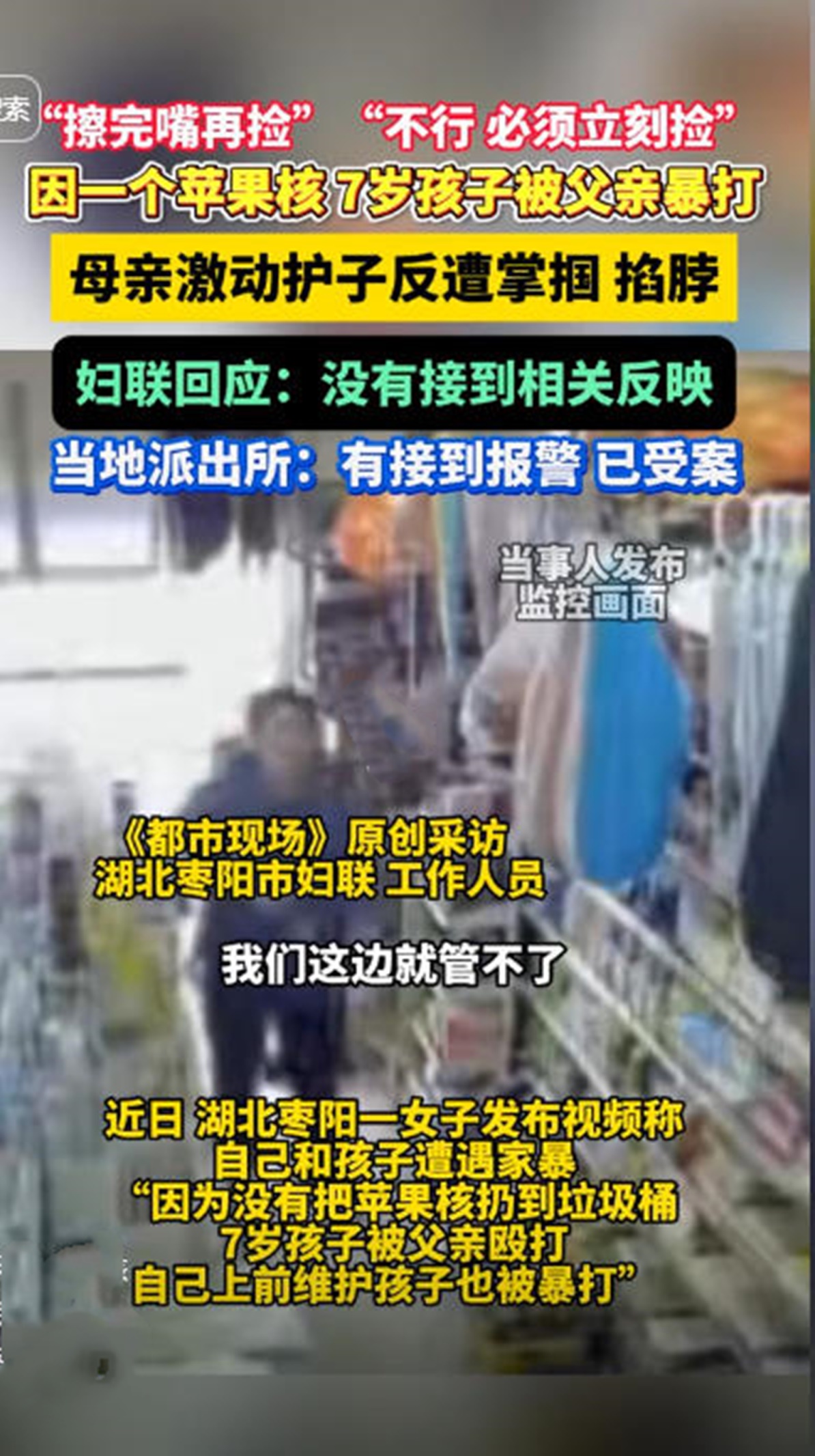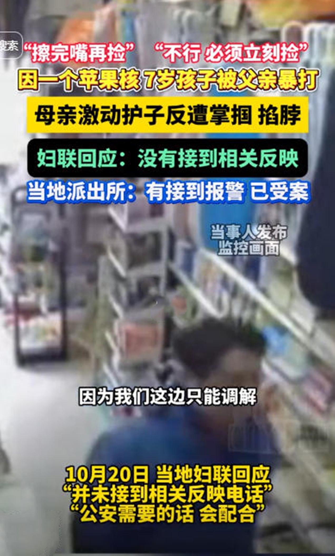 就因为一个苹果核,就遭亲爹打,下手之狠并没有半点怜惜,连孩子亲妈都劝不住,得有多大的仇呀,让一位父亲沦丧成这样,请问:这是亲爹该干的事吗?