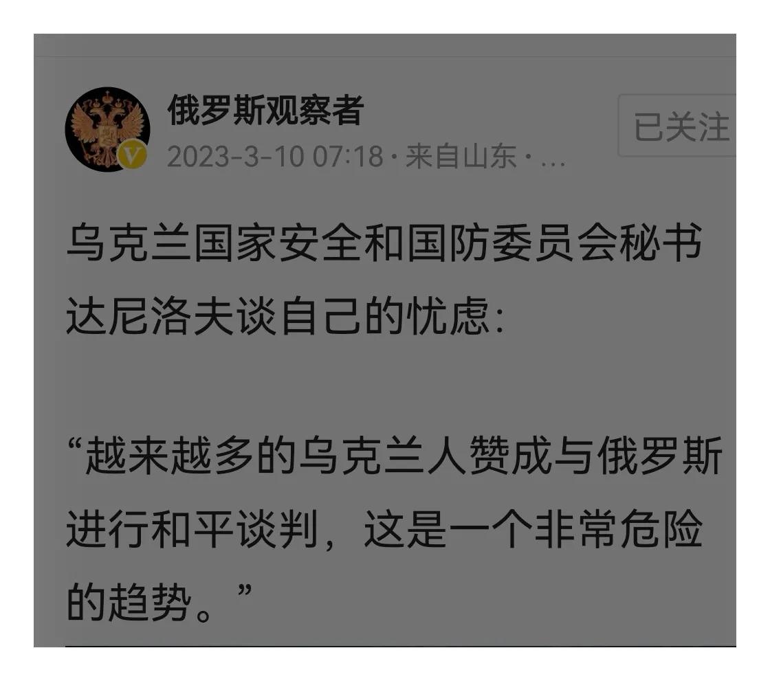 既然如此,希望与和谈的乌克兰人是否真的越来越多?如果是,是因为什么?如果是,此消息明显有利于俄方,达尼洛夫为何要将它泄露出来?