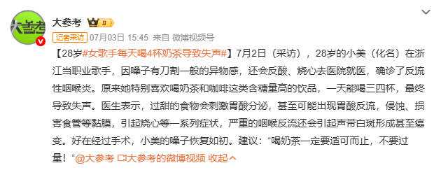 很多人都说,自己每天靠咖啡奶茶“续命”,但是,一些人因为每天一杯咖啡奶茶,把自己喝进了医院。反流性咽炎正成为“隐形咽喉杀
