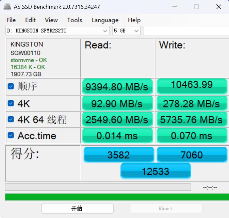 G5 SSD作为金士顿品牌PCI-E 5.0固态硬盘的先行者,这款固态硬盘的性能没有让玩家们失望,在INTEL平台的读取速度上限为12GB/s,写入速度上限为13GB/s,远超上一代产品。在实际使用中,这种速度的提升将显著缩短大文件传输、系统启动和应用程序加载的时间,为用户带来更加流畅的体验。
