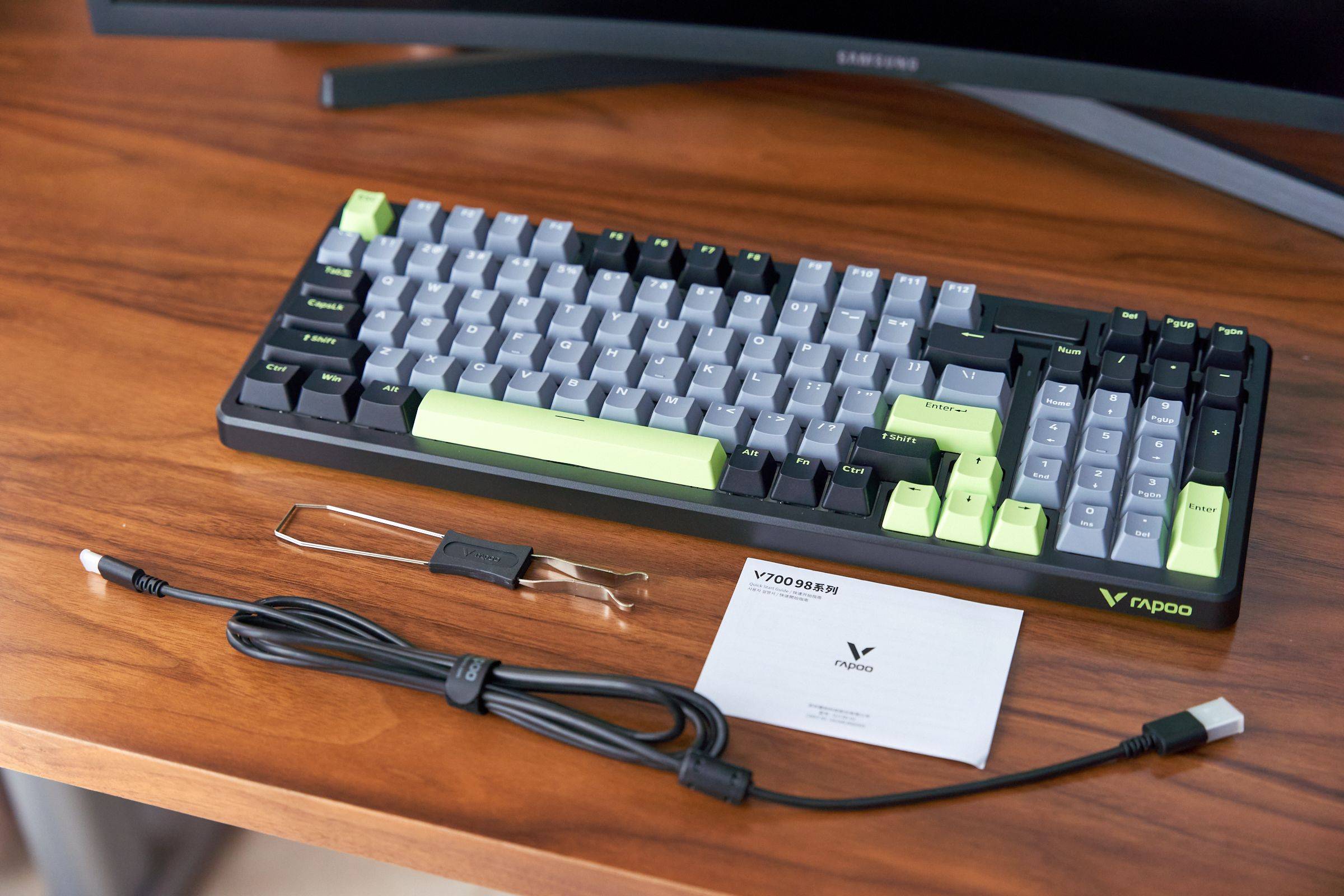今天就趁热开箱雷柏新品V700DIY-98,三模无线+RGB+7层Gasket+热插拔快银轴+800小时续航,二百多价位实在让我没忍住。