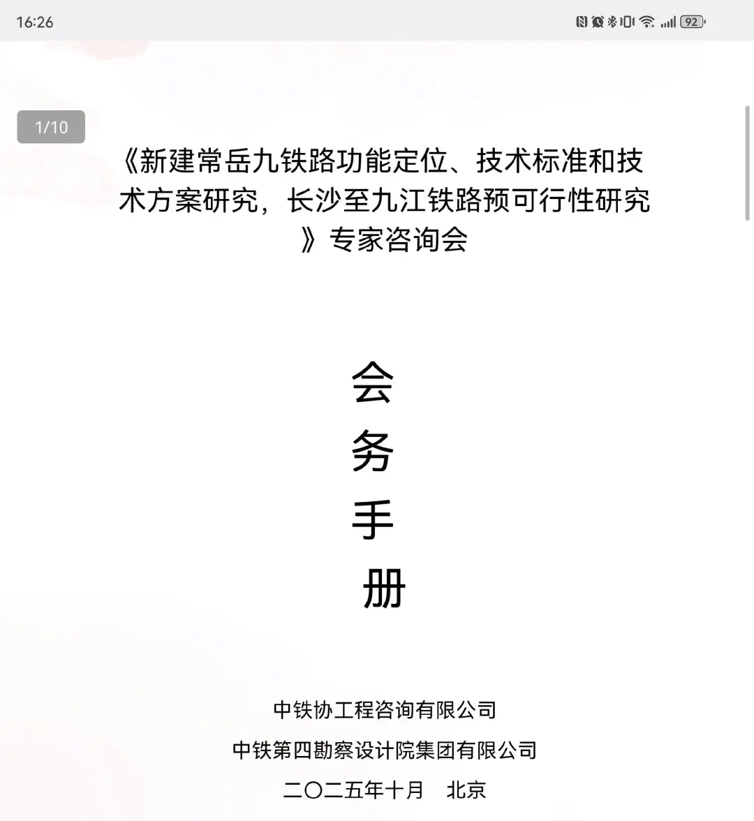 2025年10月中铁协工程咨询有限公司与中铁第四勘察设计院集团有限公司在北京召开的《新建常岳九铁路功能定位、技术标准和技术方案研究,长沙至九江铁路预可行性研究》专家咨询会,是长江中游及湘鄂赣交界区域铁路网建设的关键节点事件,既标志着常岳九铁路项目从“规划研究”向“前期推进”的实质性跨越,也为长沙至九江铁路的后续建设奠定了重要基础。