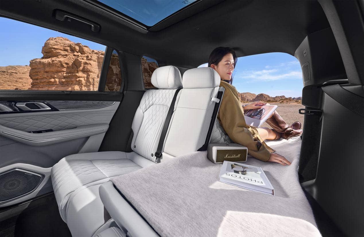 实际乘坐时,二排按摩力度适中,配合腿托调节,中短途出行十分舒适。Bose音响、双层隔音玻璃以及香氛系统的加入,进一步优化了乘坐品质。车辆还提供“双人沙发床”和“2米大床”两种空间模式,对喜爱露营的用户来说非常实用。