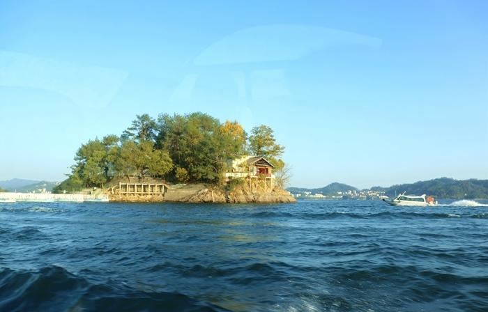 坐快艇的感觉真好,快艇速度很快,风驰电挚,在水面上划出一道道翻滚的浪花。不一会儿,第一个景点梅峰岛到了。    该岛由五座形似梅花的山丘组成,海拔601米,以群岛星罗棋布、港湾纵横交错的自然景观著称。    上山可坐索道,可步行。我选择坐索道,非常方便快捷。