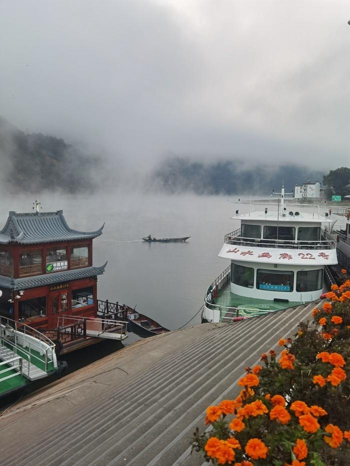 游完了安徽徽州古城后,我做了一下旅游功课,发现一条水路,可以从安徽坐船到浙江的千岛湖。水路的名字也很好听,叫新安江山水画廊风景区航线。我当机立断,就是它了,我要坐船去千岛湖。
