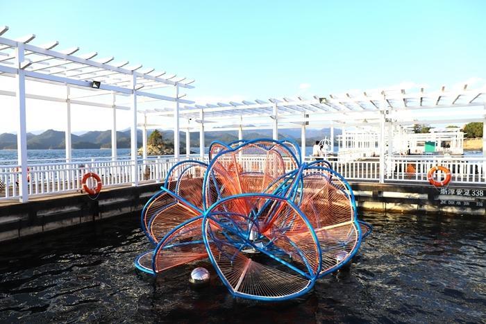 山顶设有东观景台和西观景台,其中西观景台可俯瞰300余座岛屿,呈现"青山绿水金腰带"的地貌特征。金腰带就是在水中的小岛靠近水面的部分露出的褐黄色土地。