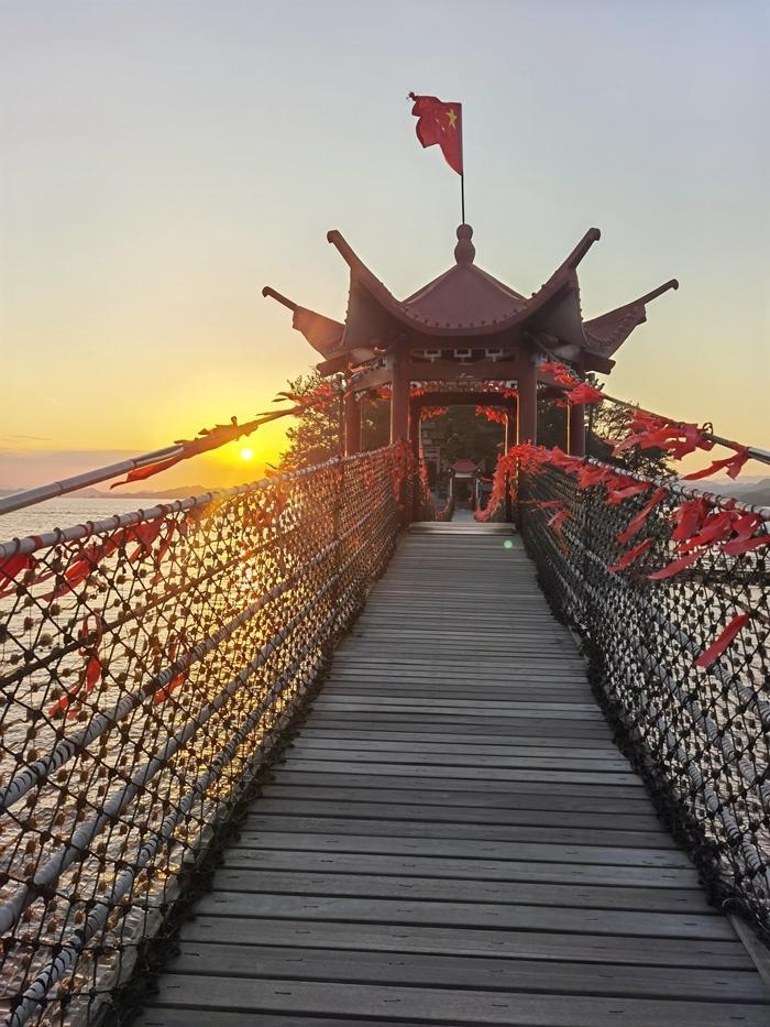我来到了月光岛(原名五龙岛),主岛面积0.04平方公里,海拔126米,由情园、逸园、系园、心园、梦园五岛组成。2010年更名为月光岛,名称源于岛屿群形成的“月亮湾”外形与中国月亮文化的契合。