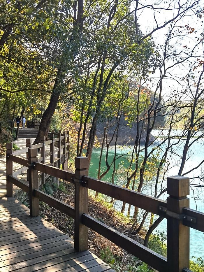 我们游的第二个岛叫天池岛。    天池岛的形成与南宋定都杭州密切关联,公元1138年南宋正式迁都临安(今杭州)后,为营建宫殿需大量优质石料。岛上七口人工石池系当时工匠采石作业遗留,平均深度达20米,采用阶梯式开挖工艺,展现出宋代采石技术的成熟度。
