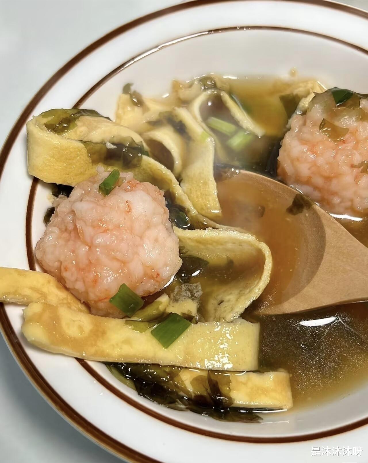 端上桌,先闻一闻,姜的辛香、紫菜的海味、虾滑的鲜甜和葱花的清香混在一起,直往鼻子里钻。喝上一口汤,温润鲜美,没有多余的调料味,全是食材本身带来的自然鲜甜。夹一筷子虾滑送进嘴里,口感Q弹爽滑,咬下去还有汁水迸出,鲜味十足。紫菜吸饱了汤汁,吃起来也是软糯鲜香。要是再配上一碗米饭,把汤淋在饭上,就是一顿完美的家常饭。