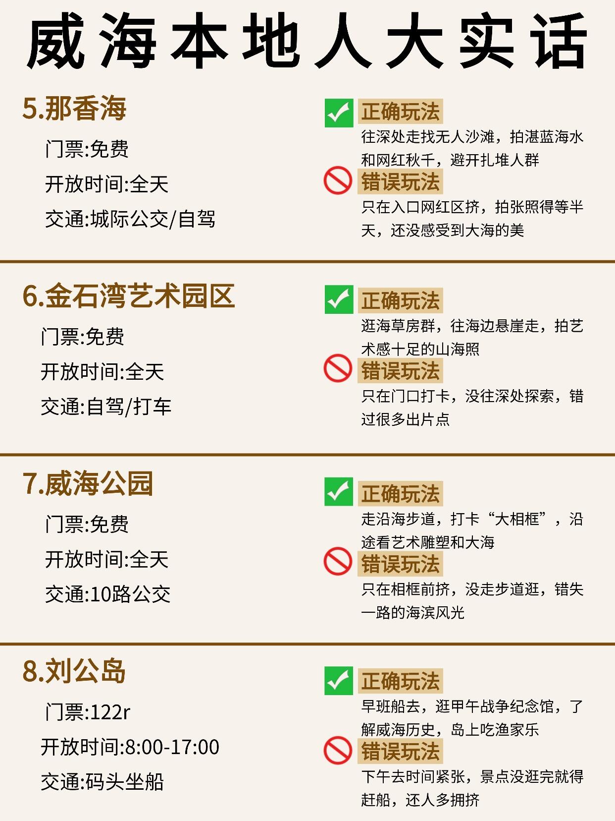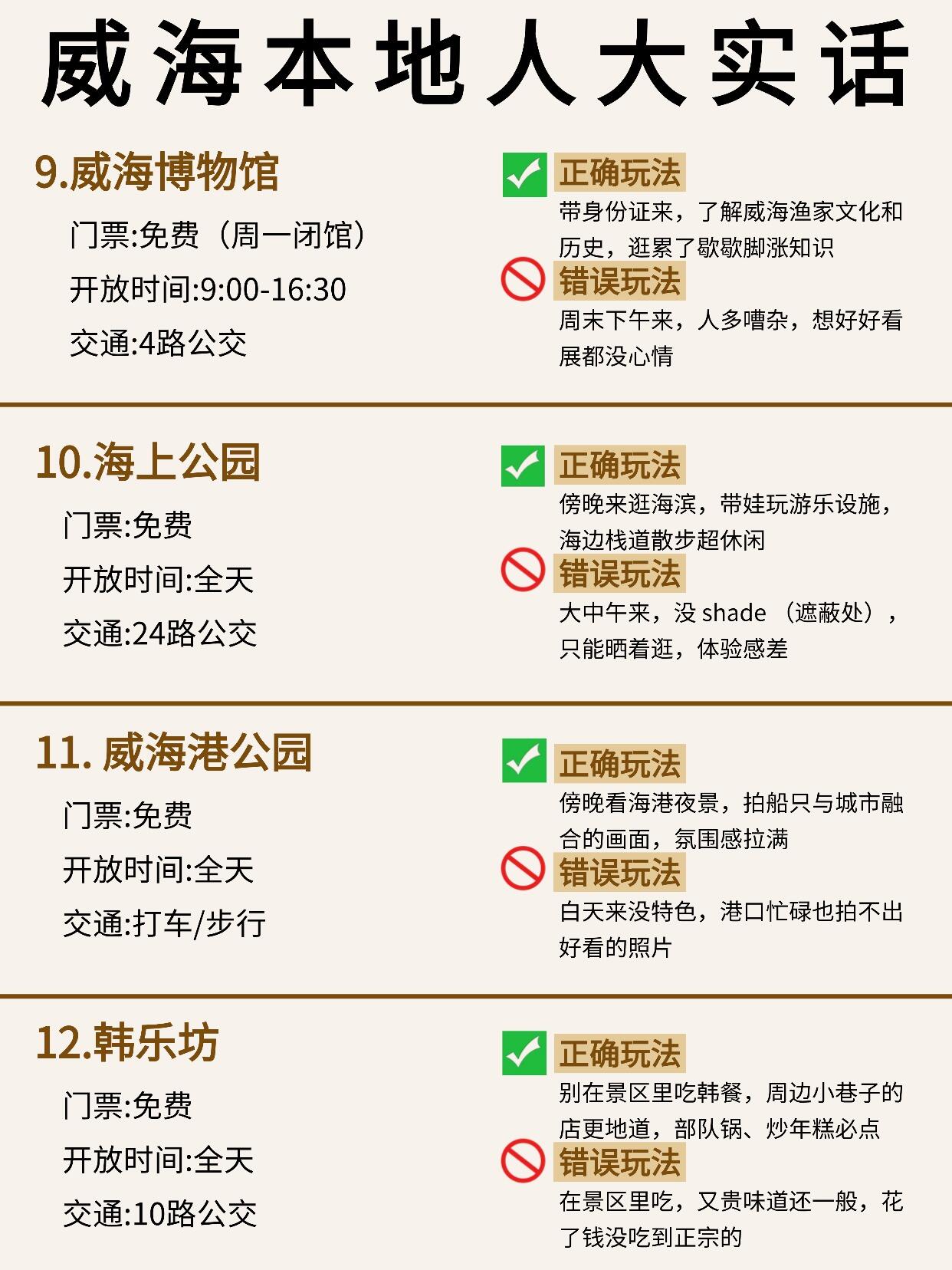 5. 韩餐别在韩乐坊景区里吃,周边小巷子的店,味道正宗还比景区便宜一半,吃到撑。6. 刘公岛早班船去,人少还能慢慢逛甲午战争纪念馆,下午跟旅行团来,挤得你怀疑人生。