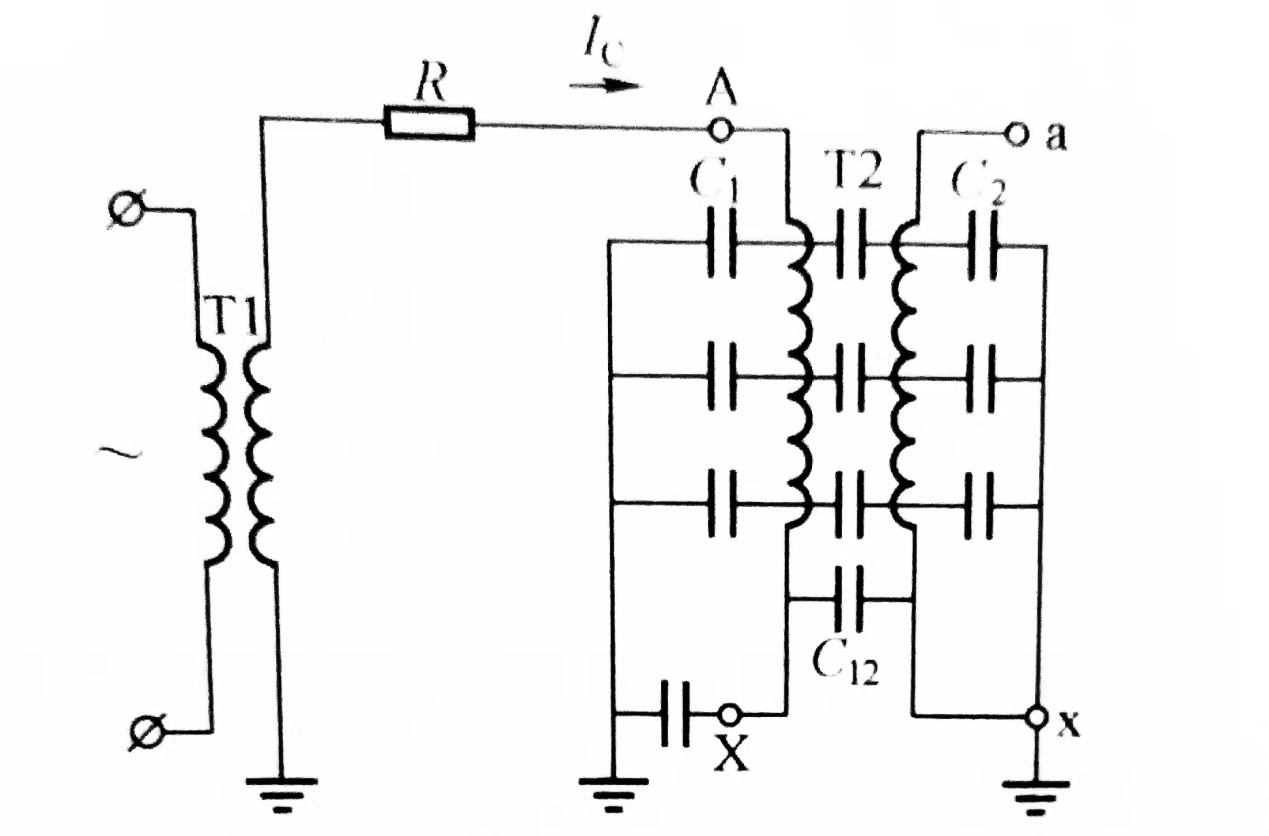 2)下图是双绕组均不短接的错误接线。可见由于分布电容的影响,各绕组中将有电容电流流过,且整个被试绕组流过的电流不等,因电容容升效应,越接近X端的电位越高,比所加的电压还高;又因为非被试绕组开路,被试绕组电抗大,导致X端电位升高,严重时会损坏其绝缘。