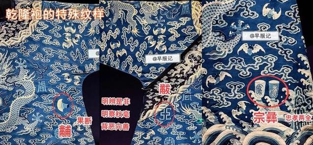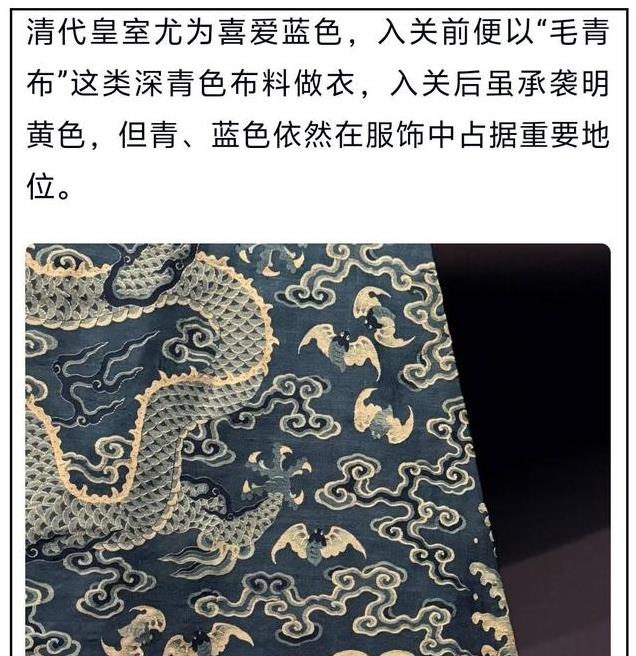然而,最令人叹为观止的,莫过于合影背景墙上悬挂的那件青蓝色龙袍。它与故宫博物院珍藏的乾隆三蓝龙袍有着惊人的相似之处:五条金龙盘踞在肩部、前胸和下摆,气势恢宏。
