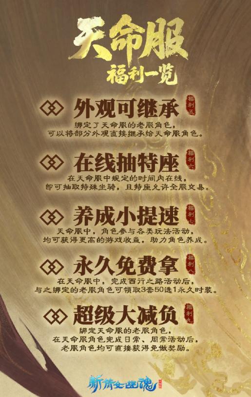 当然,除了靠新颖机制吸引新老玩家们,《新倩女幽魂》还放送了大量福利来留住他们。斗战服特殊坐骑?挂机就送!天命服特殊外观?副本能爆!五十套经典时装?象征性收1元宝给你了!至于老玩家,只要绑定新服角色做日常活动,老服角色也能获得大量奖励,甚至还有新服充值返老服元宝的空前福利!