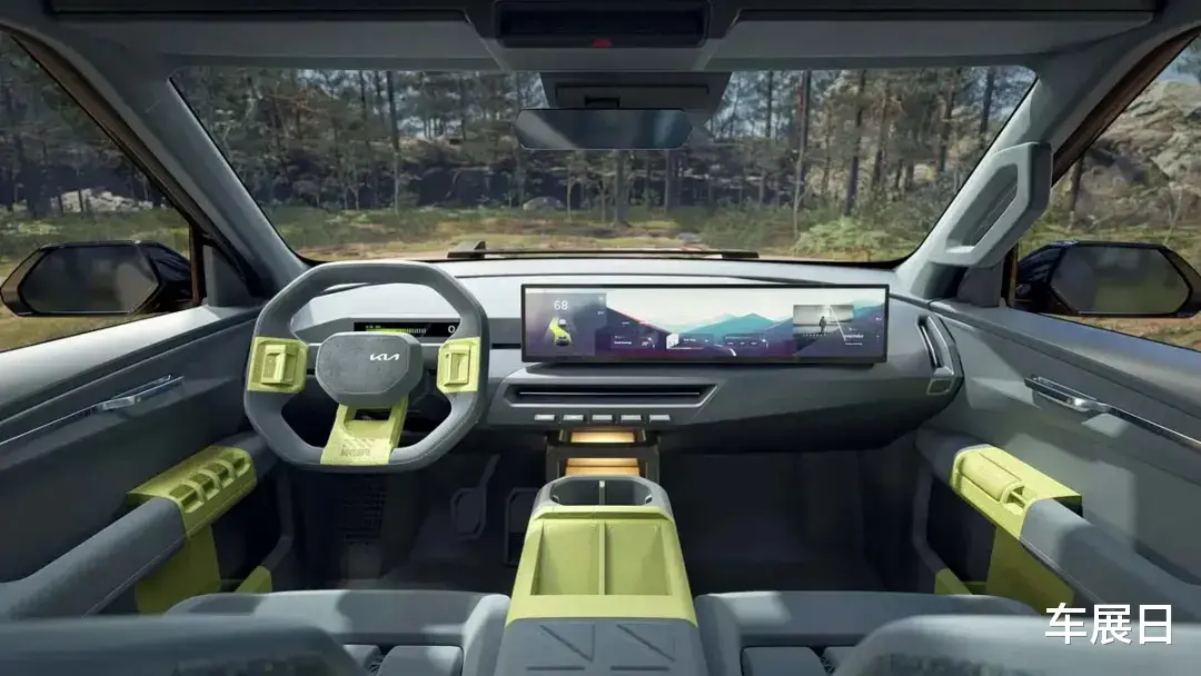 内饰方面,新车配备了巨大的触控屏,延伸至副驾一侧,还有小巧的数字仪表盘和青柠色装饰,后排座椅设计也很特别。