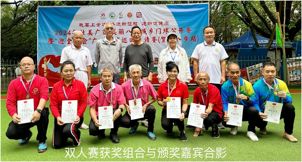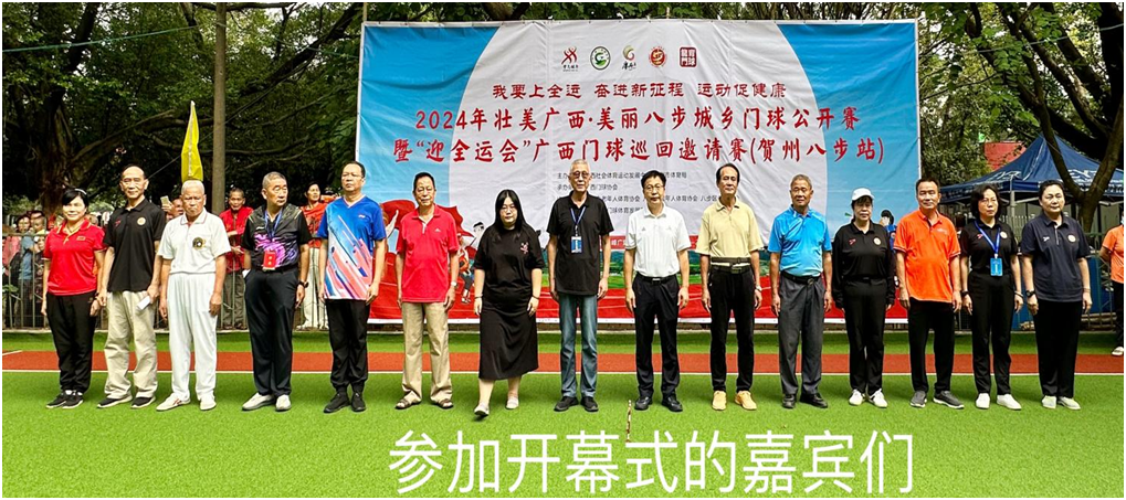 为庆祝中华人民共和国成立75周年,欢度第十六届广西体育节,以赛事践行“我要上全运,奋进新征程,运动促健康”和“全民健身与奥运同行”的全民健身主题,同时,积极营造备战第十五届全国运动会门球项目比赛的浓厚氛围,2024年10月18—20日,由广西社会体育运动发展中心和贺州市体育局主办,广西门球协会承办,贺州市老年人体育协会和贺州市八步区老年人体育协会、八步区门球协会协办,深圳龙胄门球体育发展有限公司支持的,2024年壮美广西·美丽八步城乡门球公开赛暨“迎全运会”广西门球巡回邀请赛(贺州八步站),在广西贺州八步激情开赛。来自全区8个区直系统单位、8个市、9个县(区)和湖南省江永、江华县的31支门球队与24个双打组合,共321名门球运动员参加了比赛。