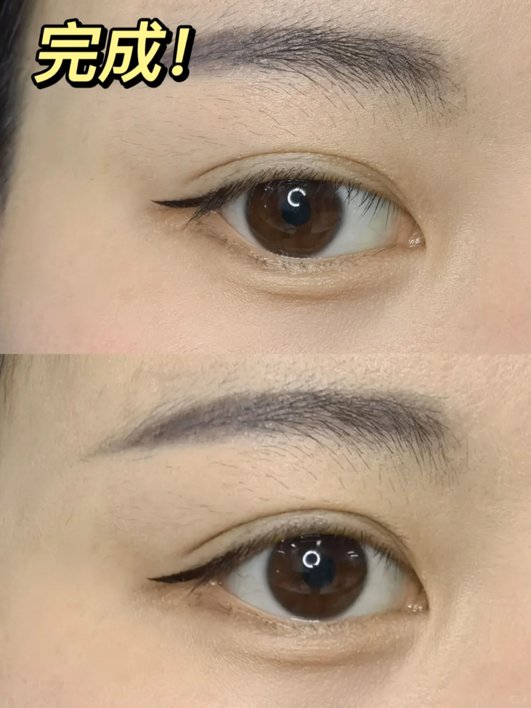 将眼线拿开之后就会得到一条不完整的眼线了,再使用眼线笔进行一下简单的修饰就可以了。