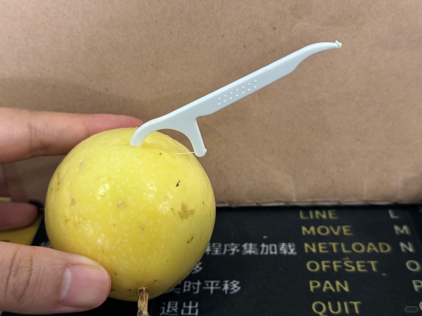 大家除了可以使用牙线锯开百香果以外,同样也可以使用牙线来削水果皮。