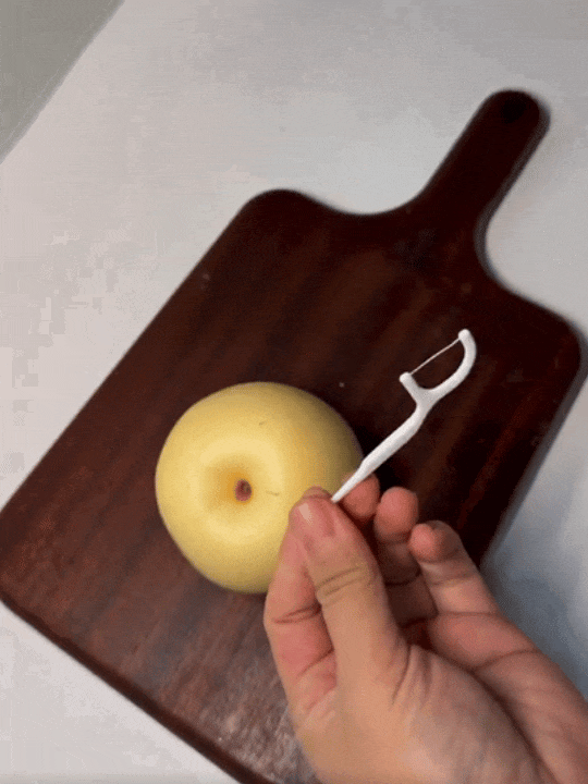 使用牙线来去除水果皮,不仅特别的简单方便,而且也很安全,再也不用担心削水果的时候会不小心弄伤手指了。