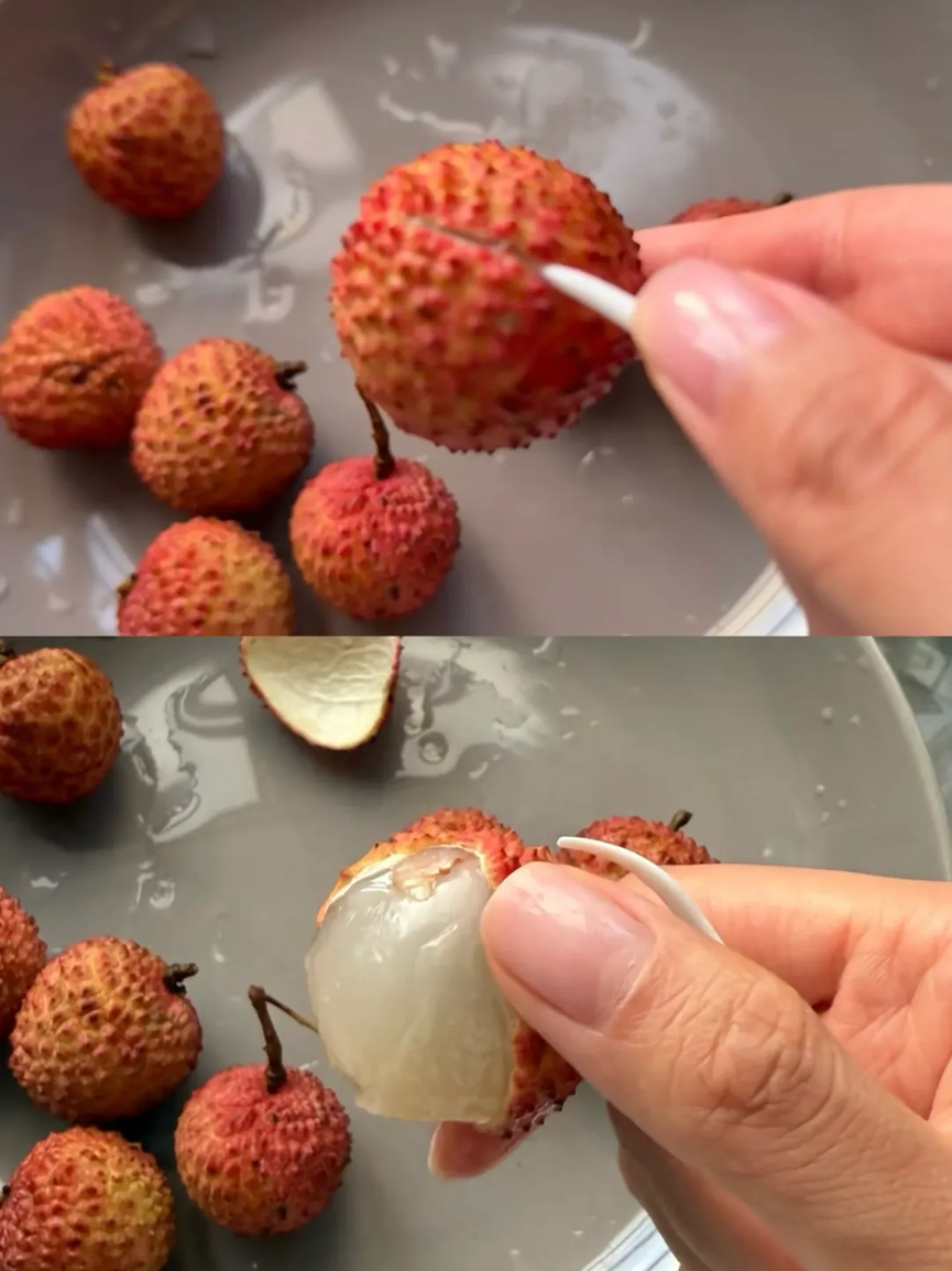 方法非常的简单,大家只需要使用牙签的尖头,先在果皮上划开一个小的口子,再使用现身转着圈,将果皮拉下来就可以了。