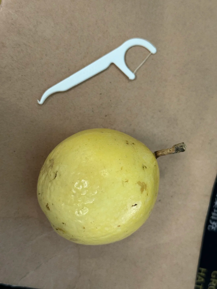如果大家要吃百香果,身边又恰巧没有水果刀的话,就可以尝试使用新的牙线,来将百香果切成两半。