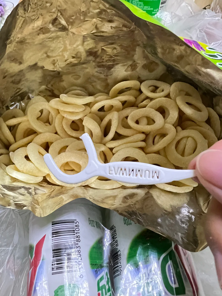 除了使用牙线制作免费的薯片夹以外,大家也可以使用家里面的牙线来吃洋葱圈,这样吃完零食之后也不需要再洗手了。