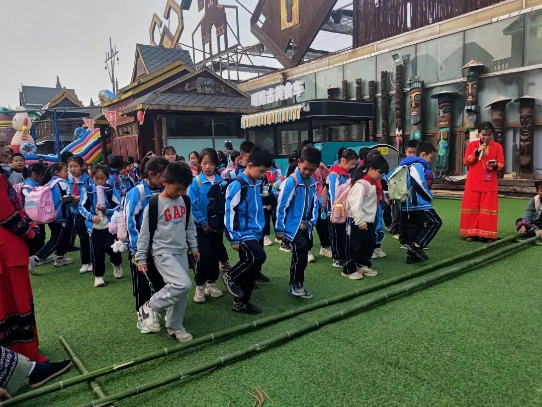 下午的活动在欢快的"民族竹竿舞互动"中拉开序幕。学生们在少数民族演员的带领下,踏着节拍穿梭于竹竿之间,在律动中感受民族文化的活力与欢乐。