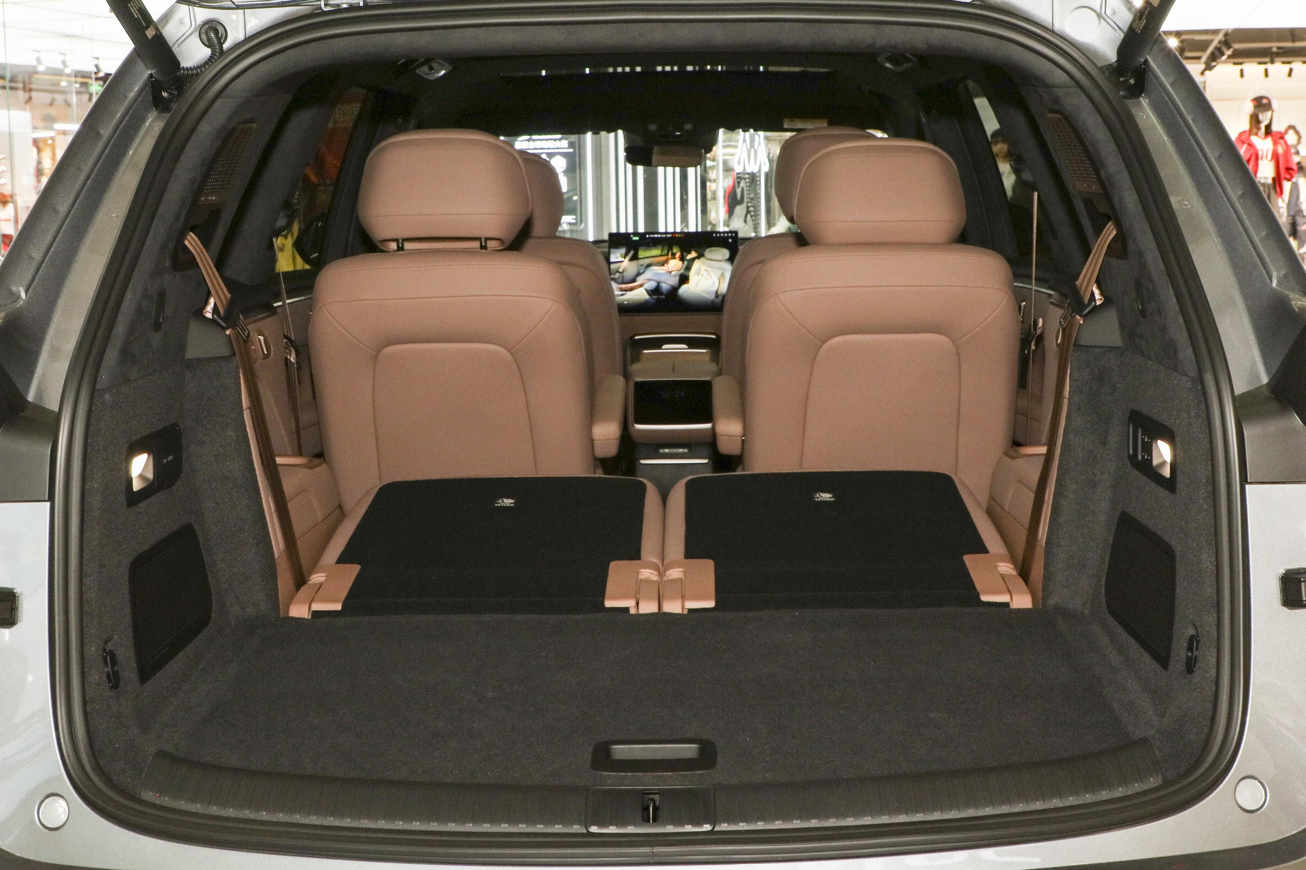 另有240L智能电动前备舱,开口高度600mm,宽度830mm,支持“乐叩”全电动开启,还能通过多种方式打开,下层还有排水孔。后备箱标准容积为430L,要是东西多,一键放倒第三排座椅,就能拓展至1214L,而且还带有220V五孔插座,方便给各种设备充电。车内还有48处储物空间,像副驾密码手套箱、双50W手机无线充电板、二排超宽折叠桌板、超大开放储物格、三排专属杯托和手机槽等等,不管是小物件还是大行李,都能找到合适的地方安放。
