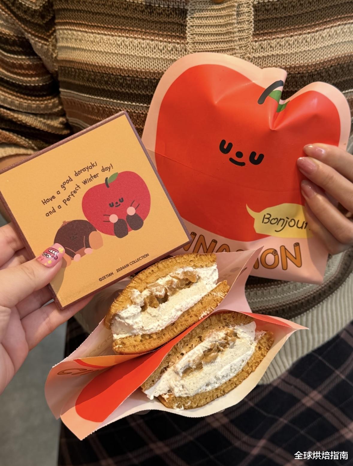 泽田本家新推出的"焦糖肉桂苹果"口味铜锣烧,以肉桂慕斯包裹焦糖炒制的苹果丁,带来甜中带辛的奇妙平衡。