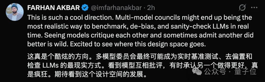 总的来说,卡帕西认为虽然模型内部自评不一定与人类主观一致,但类似的多模型集成或许将成为一个巨大的可探索空间,甚至可能成为未来LLM产品的一个突破点。