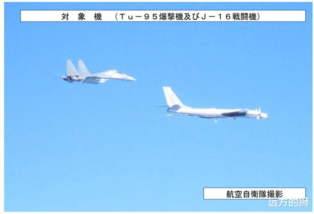 日本拍到了中俄联合空中巡航编队,包括俄罗斯的2架图-95轰炸机,1架A-50预警机,2架苏-30系列战斗机;中方编队则包括2架轰-6K轰炸机,8架歼-16战斗机。