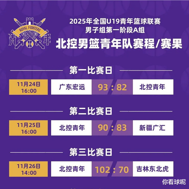 这场比赛,葛志鹏最终砍下25分5篮板3助攻2抢断,白啸桐与王淼杰同砍17分。而孙煜哲的横空出世,更是北控青训体系的完美注脚。这位从山东加盟北控的小将早已崭露锋芒,此前 U14 全国联赛中场均28.7分当选北区得分王,决赛单场轰下46分并完成3.3秒3+1绝杀,此次越级征战 U19 联赛,首战面对广东国青三叉戟就已砍下11分,如今再献高光表现,不得不让人更加期待。