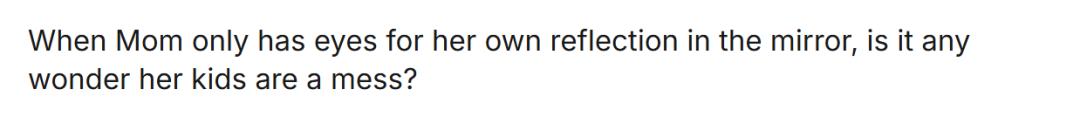 “当妈妈只关注镜子里的自己时,孩子们变得一团糟就不奇怪了。”