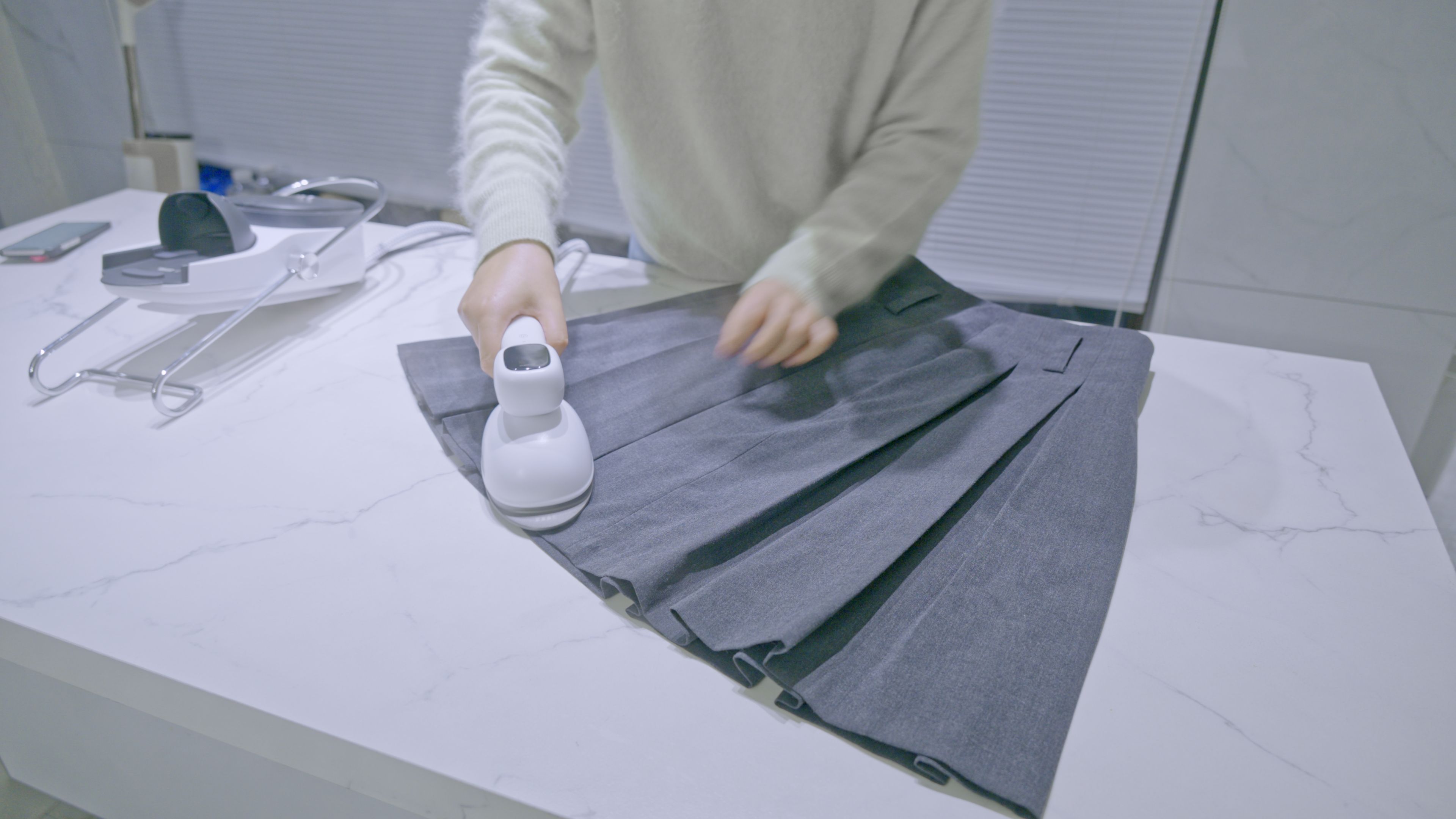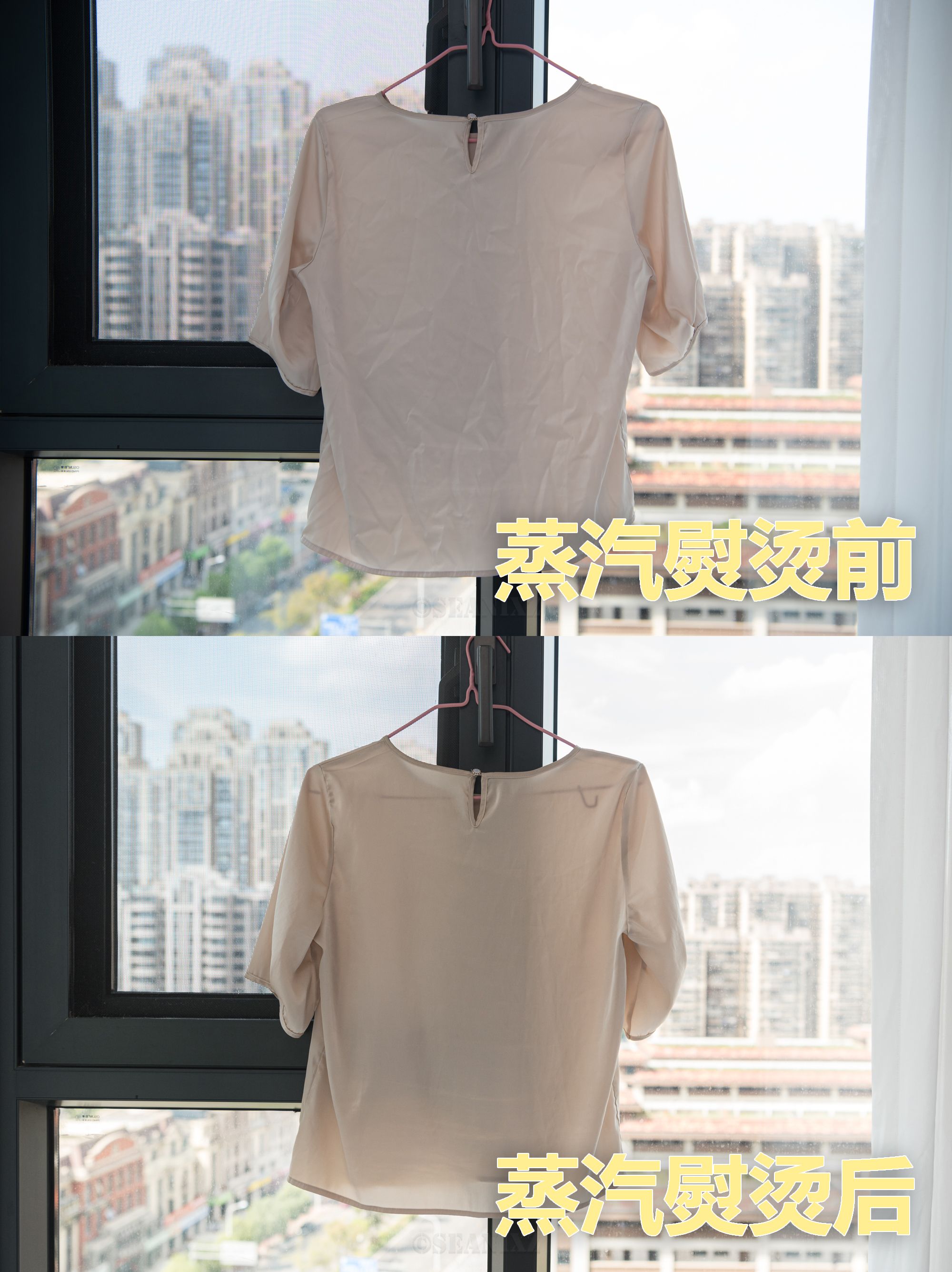 实测一件褶皱的棉质百褶裙10秒内褶皱明显瓦解,真正实现了“即拿即熨”。