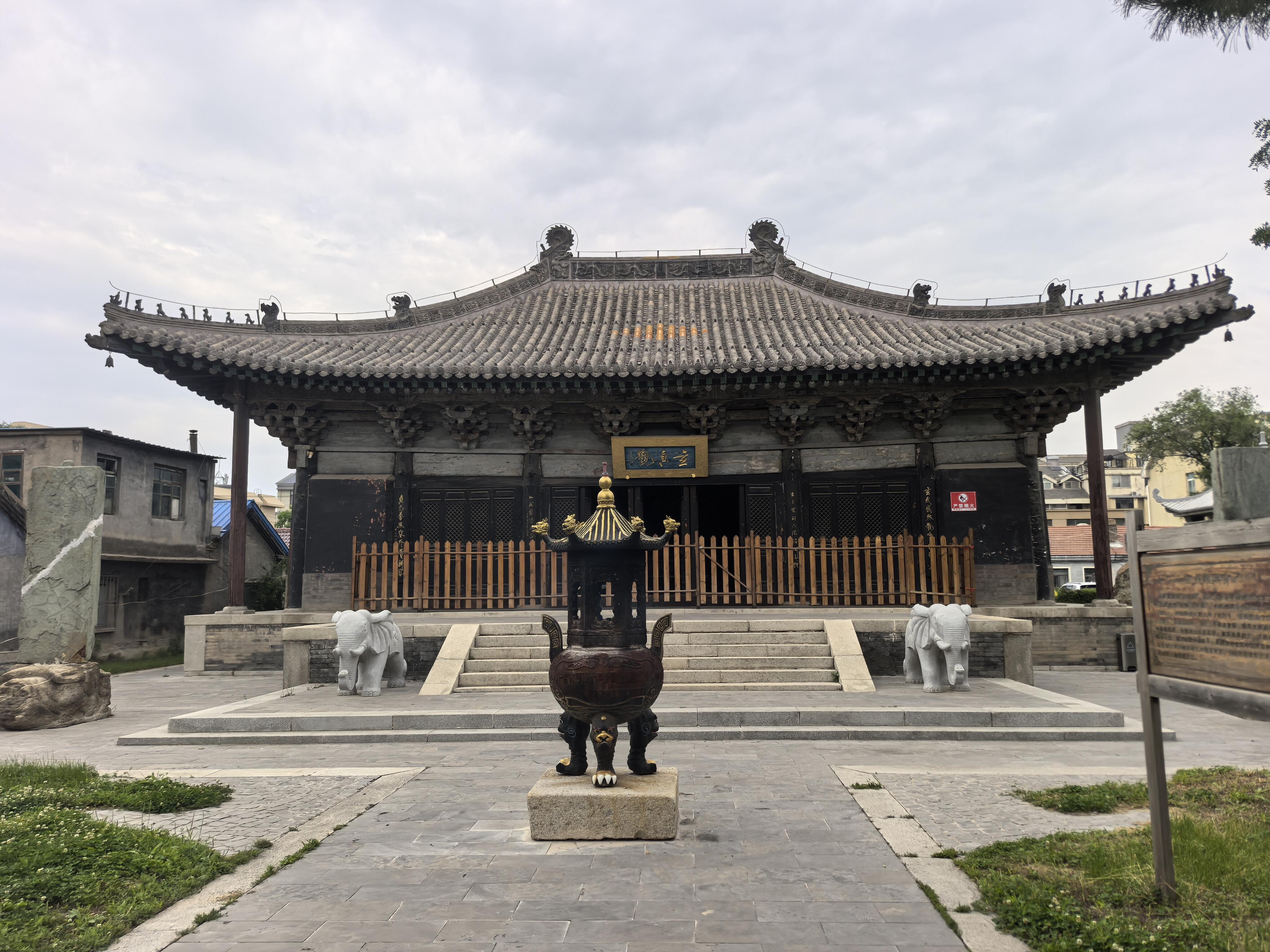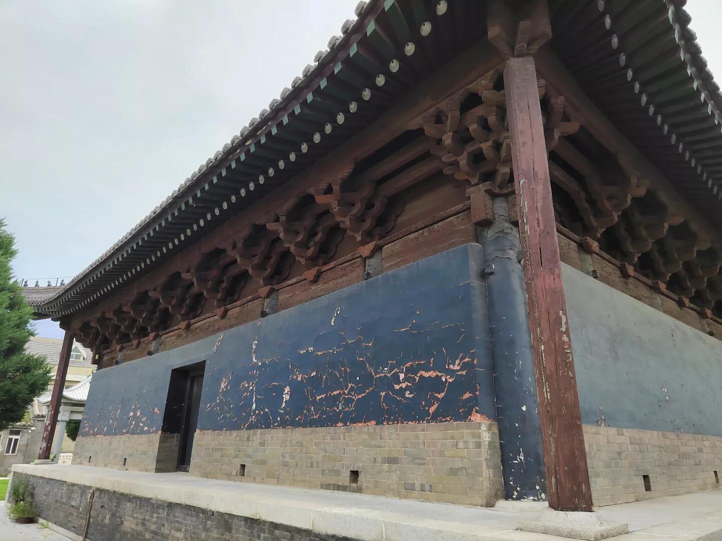 构造上,大殿明显采用了金元减柱法风格。一般的古建筑中,柱子排列规整,以支撑起整个建筑的重量。而这里,部分柱子被大胆地减去,使得殿内空间更加开阔。少了柱子的遮挡,光线能够更顺畅地洒入殿内,让人在殿中行走时,不会有压抑之感。这种独特的建筑手法,既节省了建筑材料,又满足了宗教活动的空间需求,体现了古代工匠的智慧和创新精神。