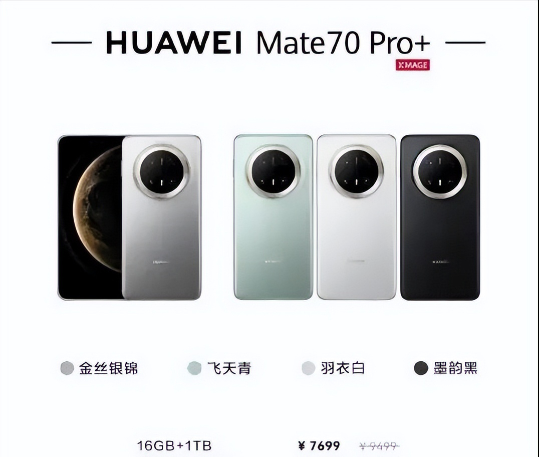 比如顶配的Mate70 Pro+,16GB+512GB版本从8499元降到6699元,1TB版本也便宜了1800。Pro版本优惠在600-1300元之间,就连优享版也跟着降了1100左右。虽然标准版和RS大师版官方没调价,但第三方平台早就坐不住了:12G+1TB的Mate70,官价6999元,某些平台已经干到4699元,足足便宜两千三!