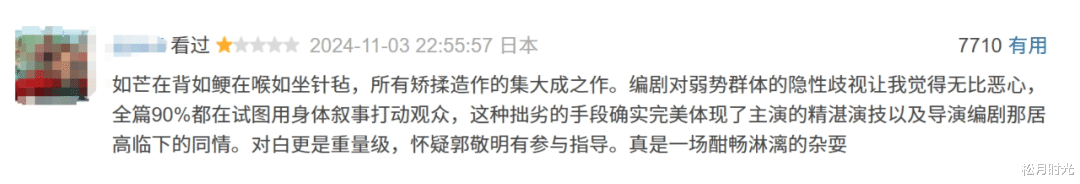 每个人的经历和认知不同,观感不一样,对作品的要求也各不相同,一部文艺作品有差评是在所难免的。