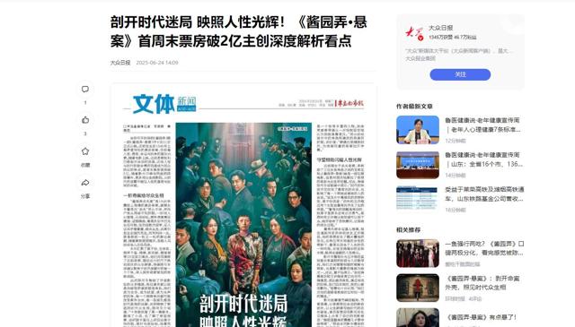 6月21日,筹备三年的《酱园弄·悬案》正式公映。