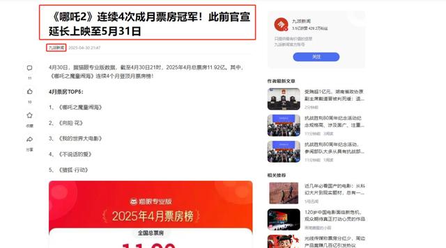 然而,尽管票房登顶,《哪吒2》却仅在今年上半年最好国产电影中位列第四。